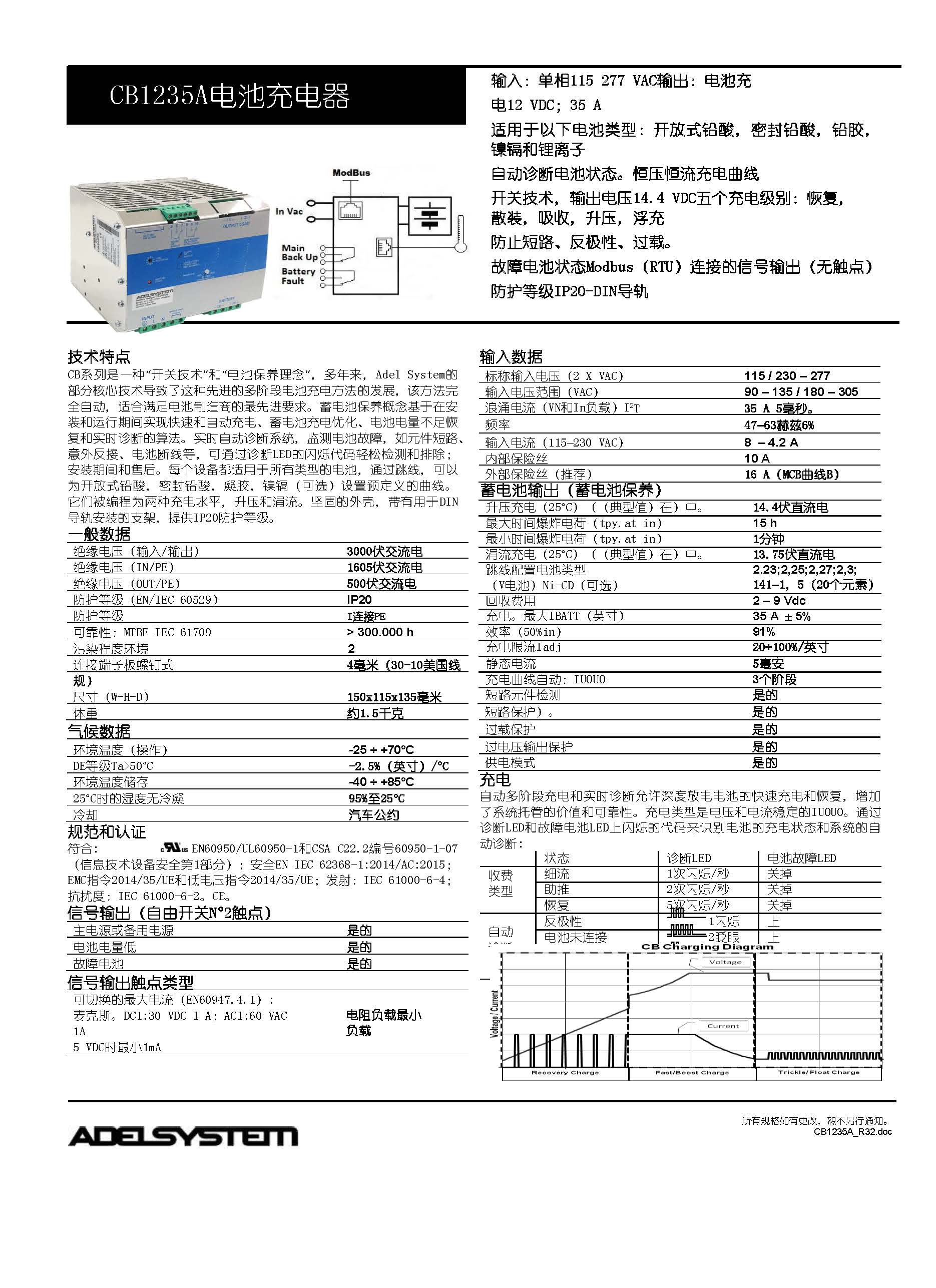 CB243A??? Battery Charger 3 Level Out 24 Vdc 3A In 115-230-270 Vac?? D