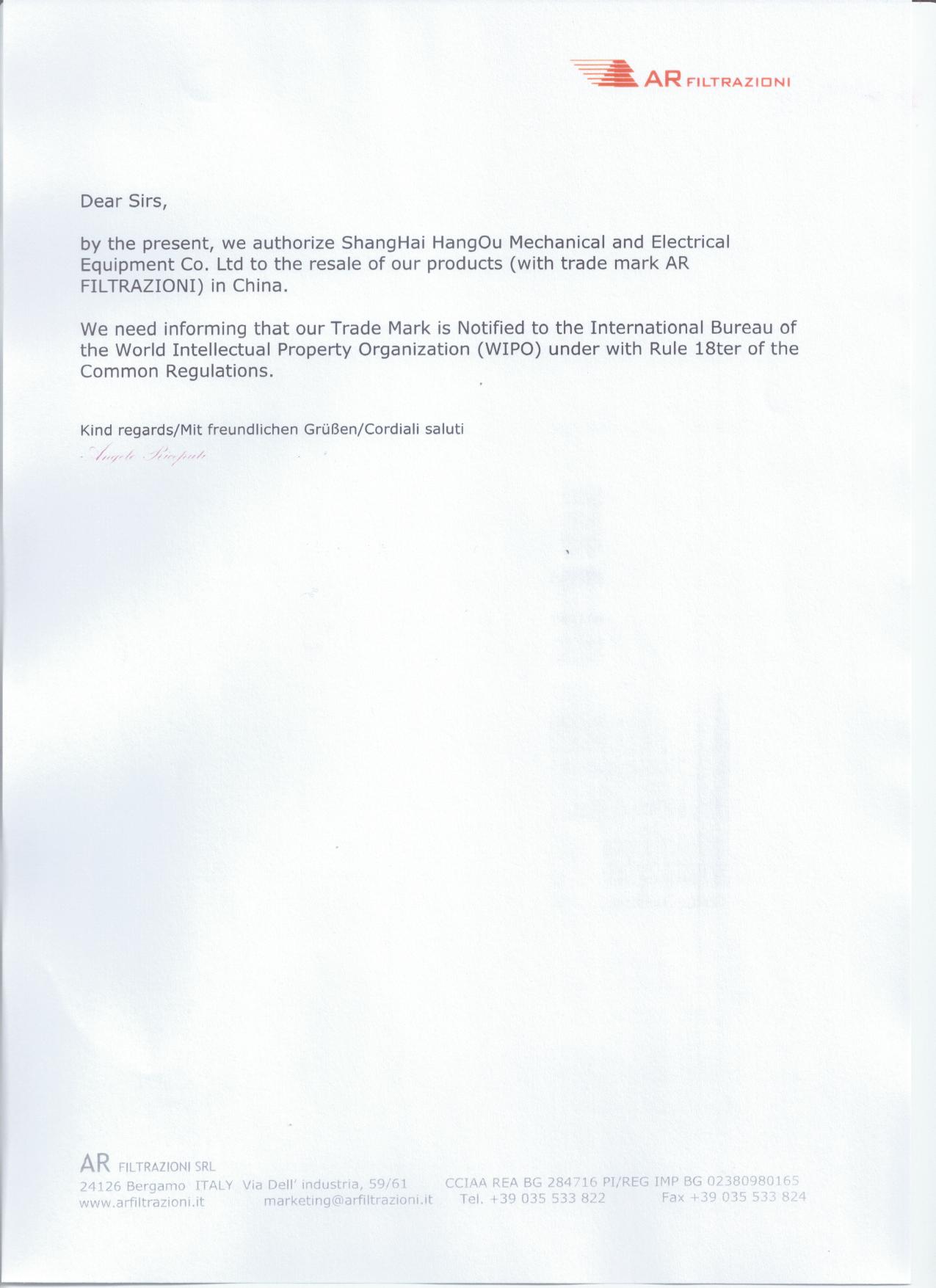 2022年AR FILTRAZIONI工廠授權上海航歐中國區(qū)代理
