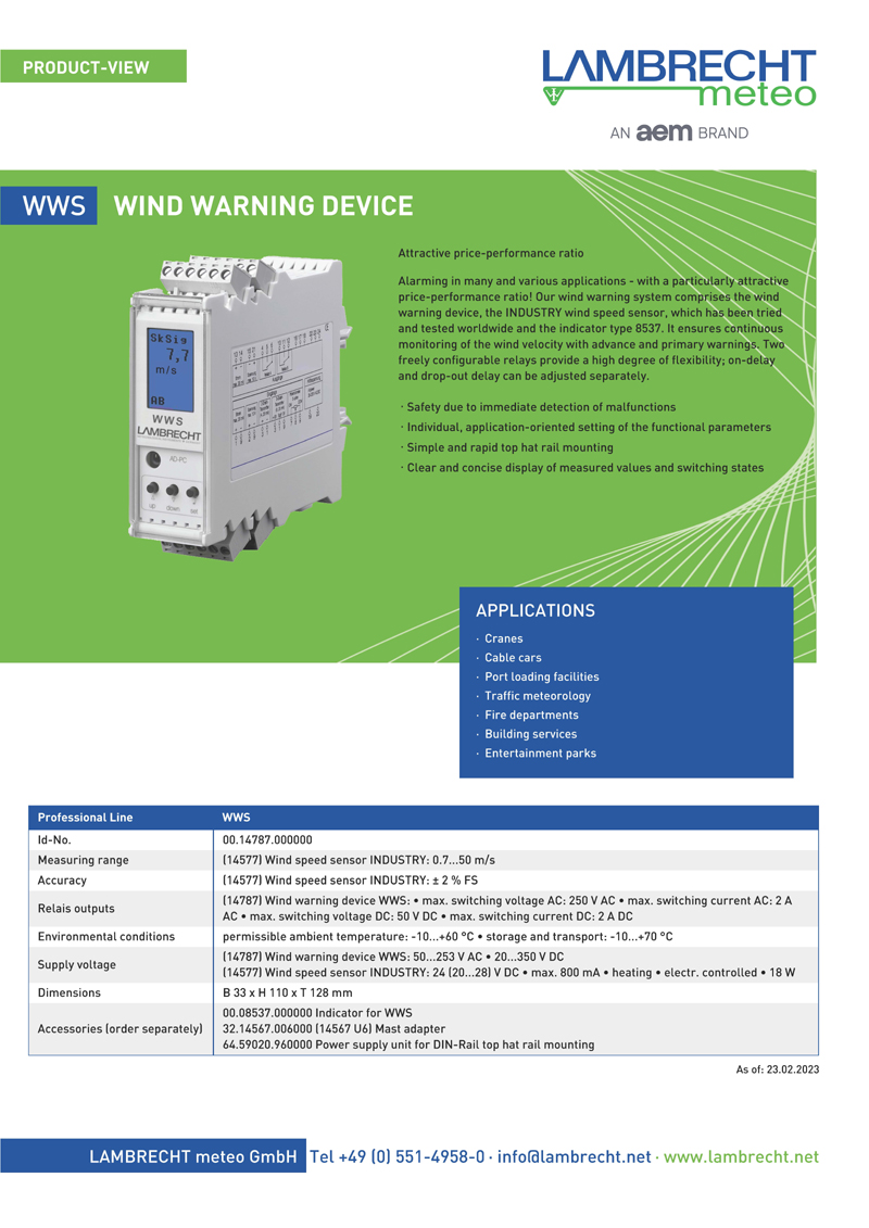 LAMBRECHT風速儀、LAMBRECHT風向標、LAMBRECHT傳感器、LAMBRECHT控制器、LAMBRECHT溫度傳感器、LAMBRECHT濕度傳感器