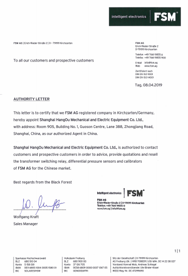 德國FSMAG公司成立于1989年,從事各種壓力傳感器,蓄能器技術(shù),變壓器,繼電器等的開發(fā)和生產(chǎn)。FSM公司擁有ISO9001:2008,ISO14001:2004的認(rèn)證。原裝德國FSM變壓器上海航歐機電設(shè)備有限公司從事進口機電設(shè)備、儀器儀表等疑難備品備件的銷售,是經(jīng)營世界各地進口設(shè)備的現(xiàn)代化企業(yè)。