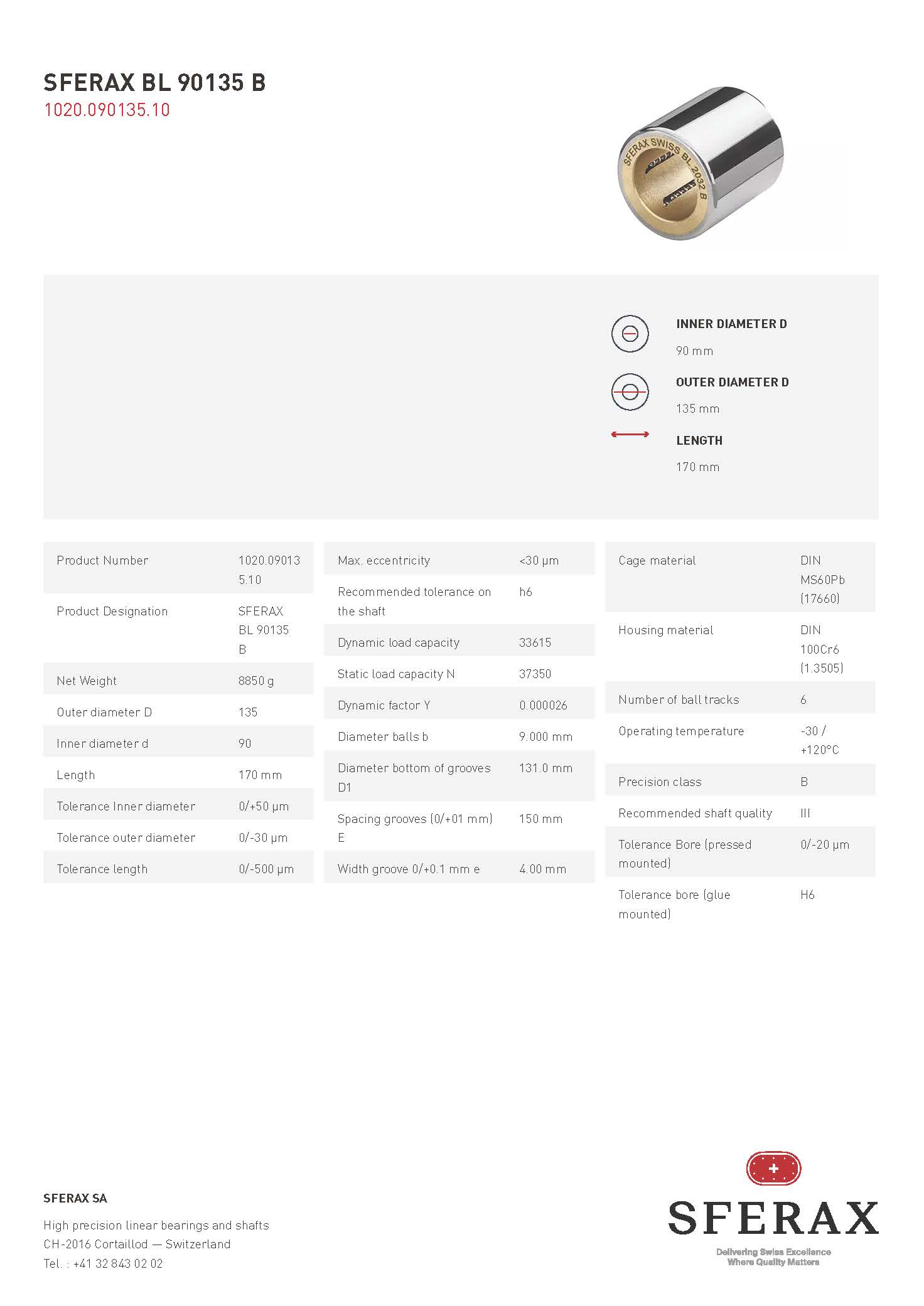 SFERAX公司生產各種規格的直線滾珠軸承,包含公制和英制。大部分尺寸都可按