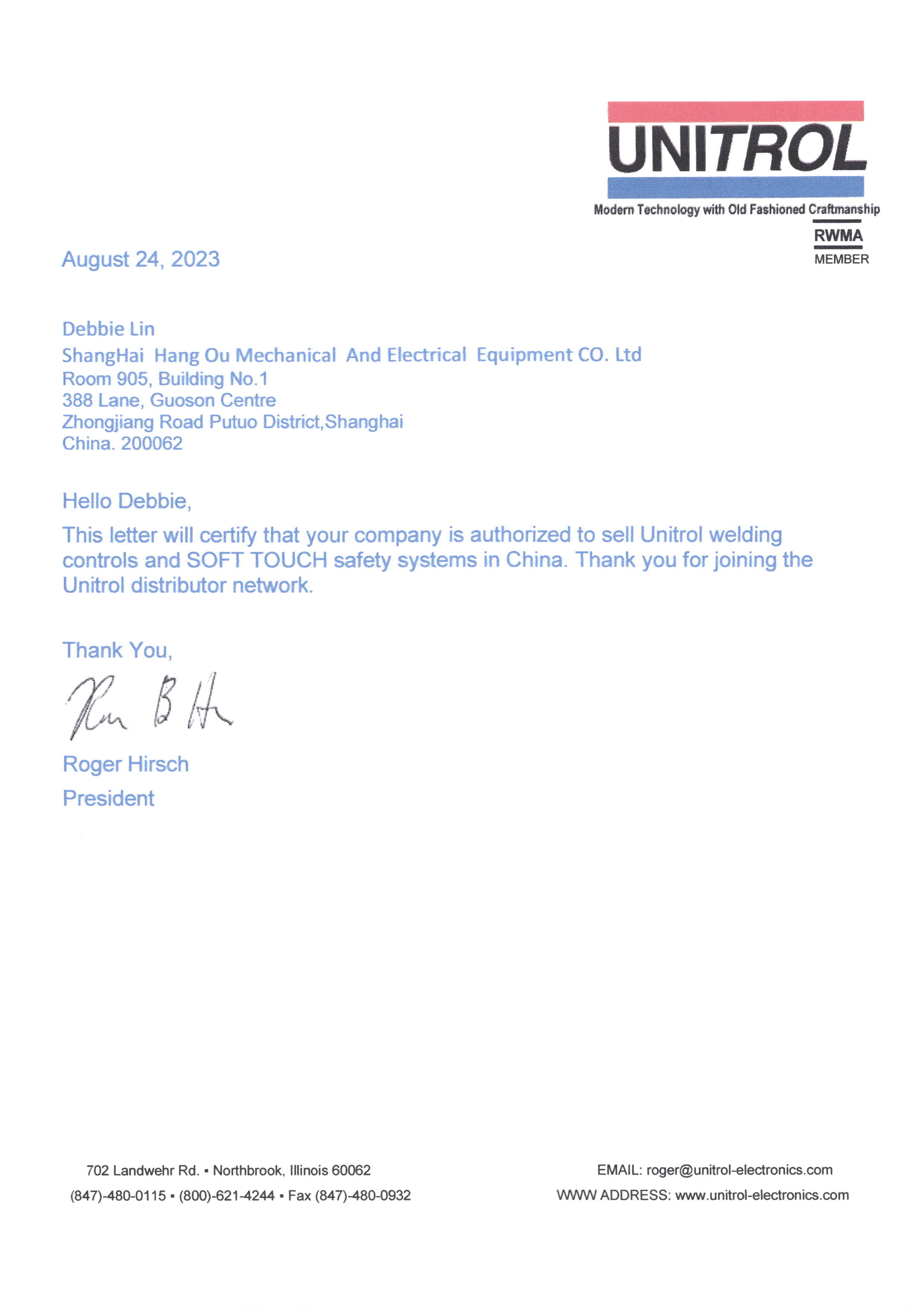 2023年UNITROL工廠授權(quán)上海航歐中國區(qū)代理