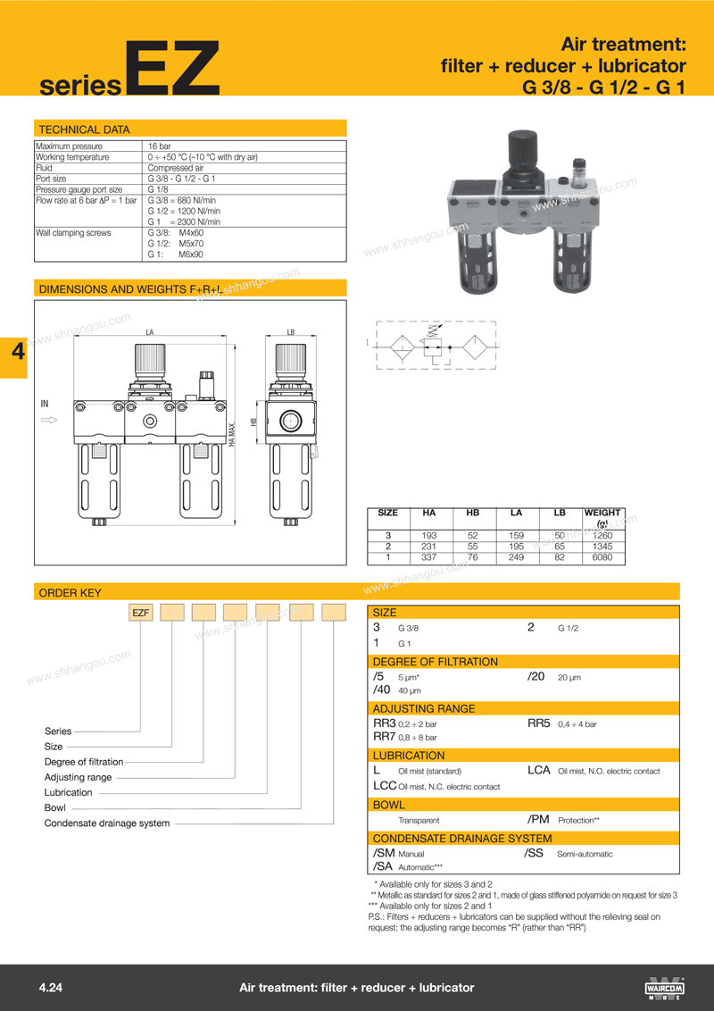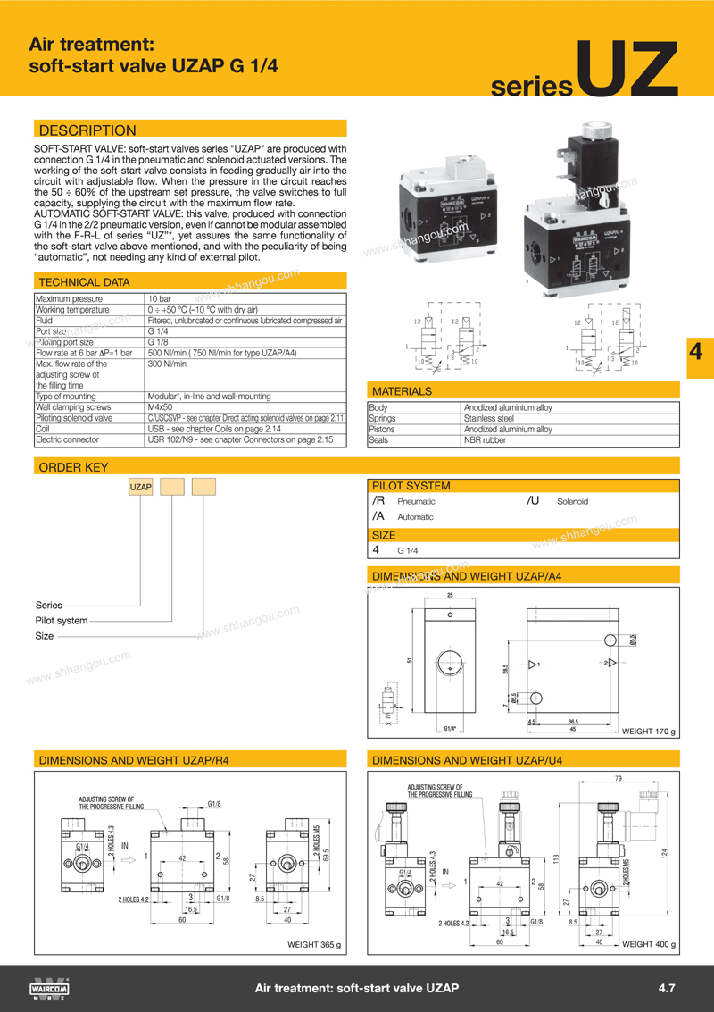空氣處理產(chǎn)品:UZ系列(U**系列過濾器,UZRR系列減壓器,UZRRM系列過濾減壓器,UZL系列潤滑器,UZAP啟動(dòng)閥,UZVL開關(guān)閥及附件)、EZ系列、RRP系列(包括E**系列過濾器,EZRR系列減壓器,UZRR/F系列過濾減壓器,EZL系列潤滑器,EZAP啟動(dòng)閥,EZVL開關(guān)閥及附件)和RRP系列高精密度壓力調(diào)節(jié)器,各系列空氣壓力儀表及壓力開關(guān)。