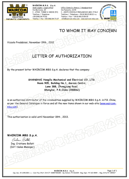 WaircomMBS集團(tuán)于1993年創(chuàng)建于意大利國際商貿(mào)中心–米蘭,十余年來一直專攻氣動(dòng)元件的研究和生產(chǎn),不斷向用戶提供優(yōu)質(zhì)產(chǎn)品。Waircom現(xiàn)已發(fā)展成為歐洲乃至世界的企業(yè)和品牌。